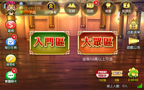 身上超過10萬金幣以上皆可進入! |