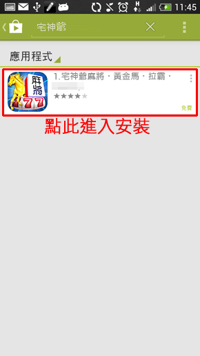 步驟二:於play 商店輸入『宅神爺Slots』點選即可進入下載安裝。