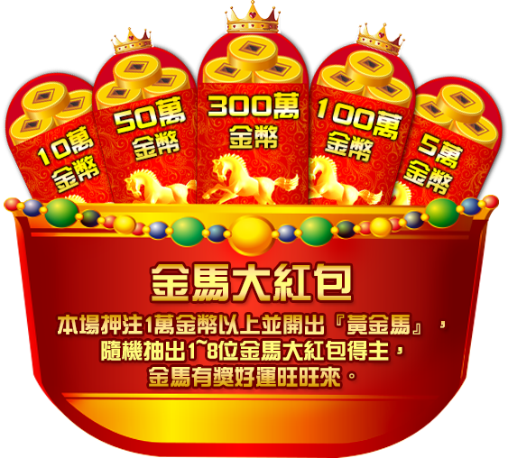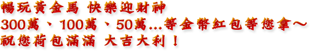 活動館別:黃金馬傳說『大眾區』暢玩,就有機會抽中大紅包!