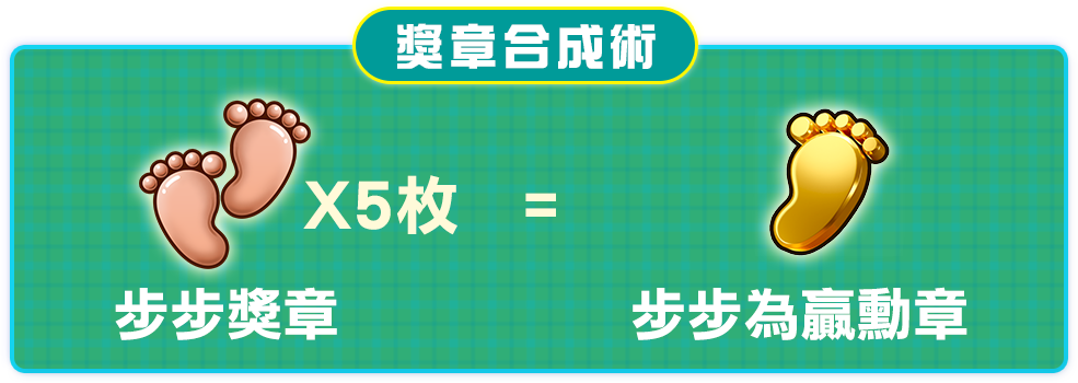- 虛寶請點選【個人】→【勳獎章】→【兌換】,點選【步步健康】即可進行兌換。