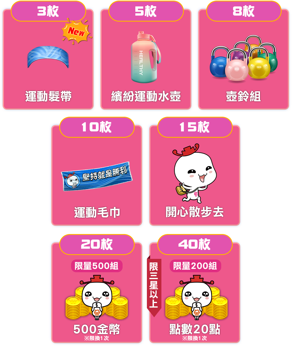 - 【獎章換好禮】金幣、點數獎勵,依照官網公告限量組數,且每帳號限換一次,數量有限,換完為止。