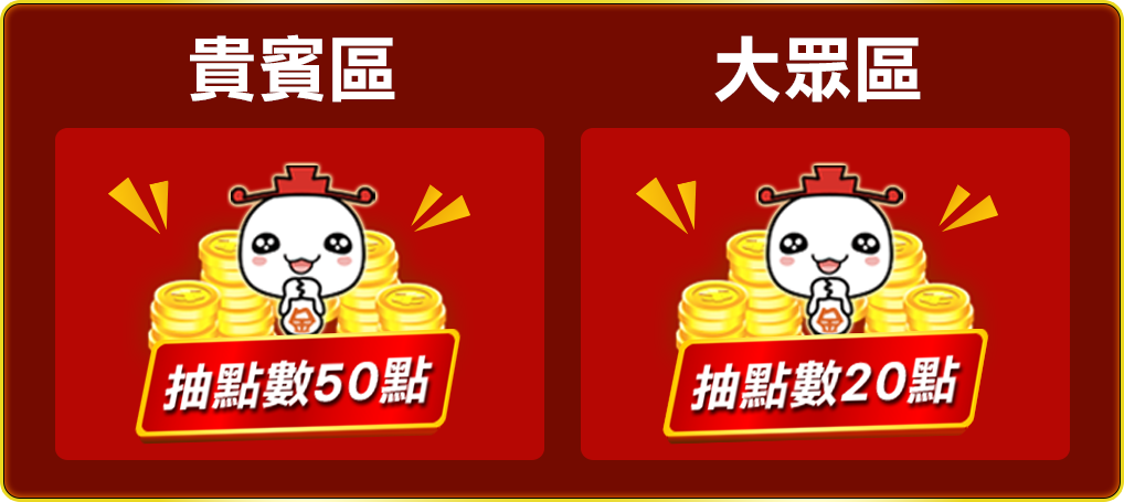 至雙喜臨門(大眾+貴賓區)進免費遊戲抽點數!