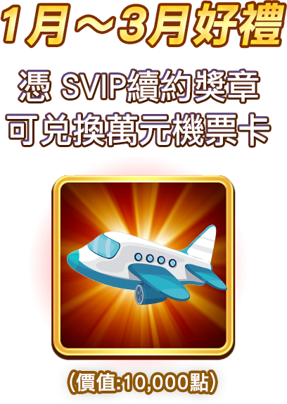 贈SVIP專屬勳章 (價值100萬金幣) |